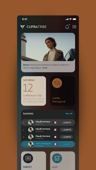 Die CUPRA Tribe App bietet einen Kalender der kommenden CUPRA -Veranstaltungen, Mediendateien, lustigen Quiz und vielen Neuigkeiten über die Marke.